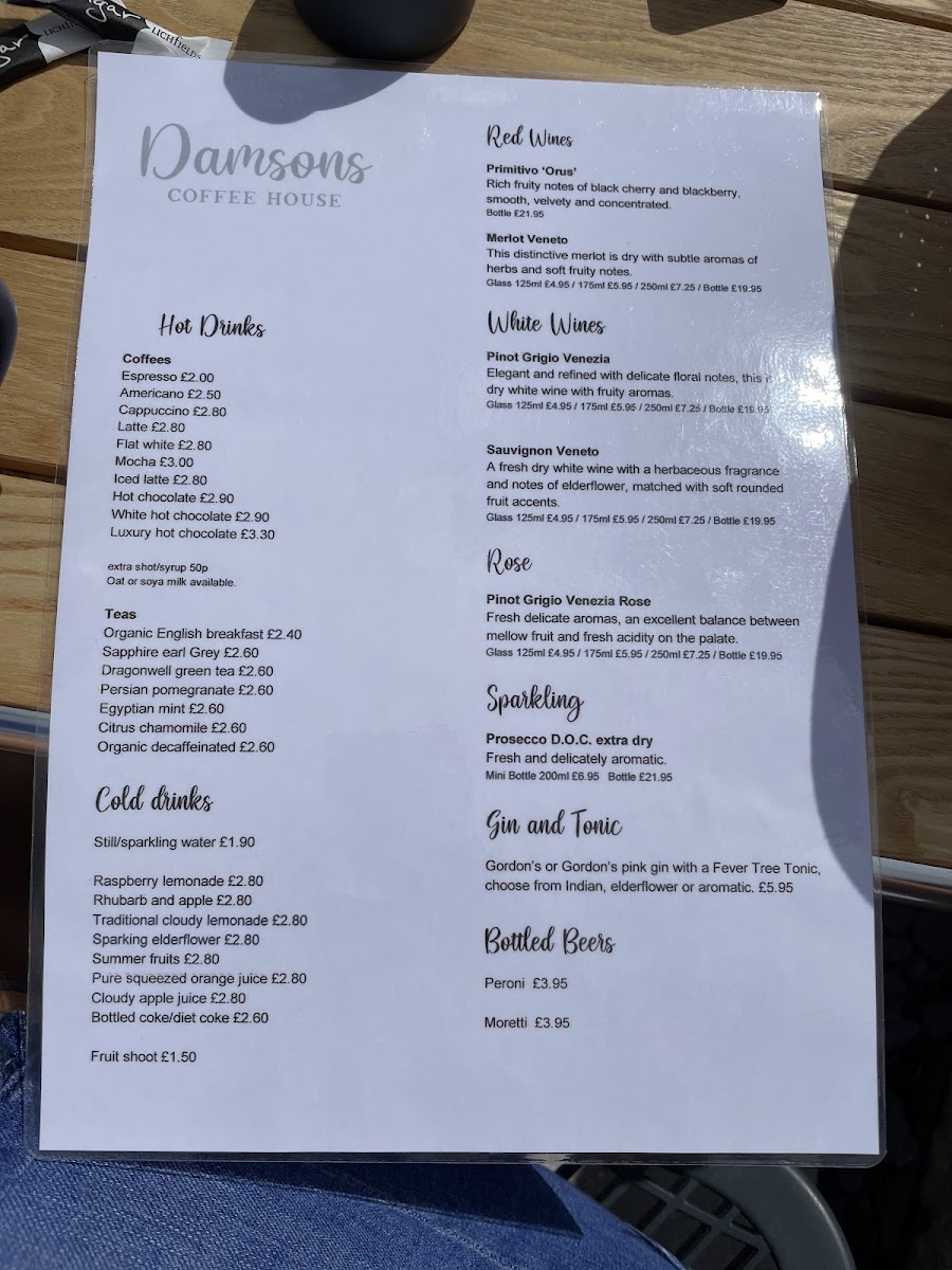 Damsons Coffee House Menu